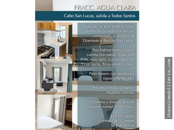 Pesos MexicanosCasa en Renta Fraccionamiento Agua Clara, Cabo San Lucas