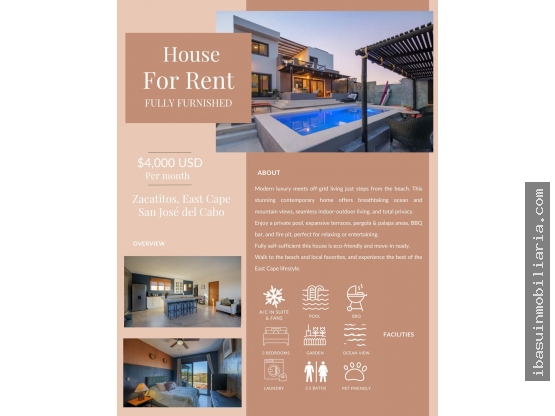 RENTA CASA ZACATITOS, EASTCAPE SAN JOSE DEL CABO $4,000 USD