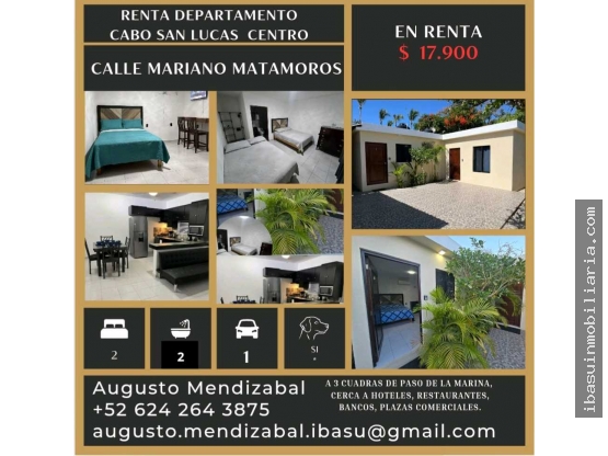 Pesos MexicanosRenta Departamento en Centro Mariano Matamoros, Cabo San Lucas. $ 17.900 mensuales.
