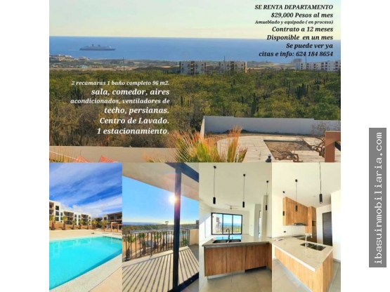 Pesos MexicanosNo dejes pasar está gran oportunidad, Miró es una de las zonas con mayor plusvalía, está cerca del cerro de la Z, a 10 minutos de la playa, con vigilancia las 24 horas del día, sin duda lo mejor para tu familia. Departamento de 96 m2, 2 recámaras, 1 baño completo, completamente amueblado, cuarto de lavado, terraza, se acepta 1 mascota pequeña con depósito extra. A tan solo $29,000 mensuales. Estaría listo para el 20 de Enero aproximadamente, puedes ir haciendo cita para ver tu próximo hogar, no te pierdas está oportunidad. Guillermo Pérez: 6241641782 Estoy a tus órdenes.