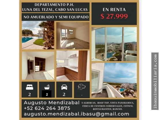 🌊Departamento Penthouse en renta Luna del Tezal. CABO san Lucas.